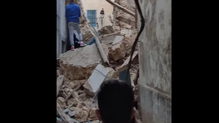 جدّ اليوم الاثنين 09 ماي 2022، حادث انهيار طابق بناية قديمة في نهج العزافين في منطقة الحفصية بمدينة تونس العتيقة.