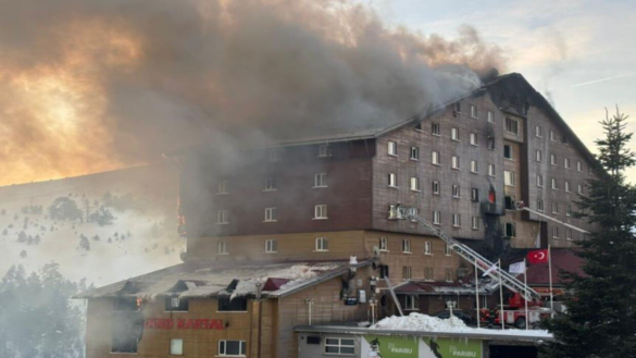 واندلع حريق في فندق معروف ضمن منتجع للتزلج في مدينة بولو ولم يتم تحديد  الأسباب بعد، وقد اشتعلت  النيران بسرعة وأتت على معظم أجزاء الفندق الواقع على قمة جبال كور أوغلو.