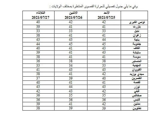 أسبوع جديد نستقبله بتواصل الحرارة المرتفعة بأغلب الجهات لتتراوح القصوى بين 39 و44 درجة مع ظهور الشهيلي باستثناء السواحل الشرقية حيث تكون بين 34 و39 درجة.