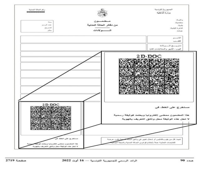 وتجدر الإشارة إلى أن هذا النص يتنزل في إطار تطبيق قرار وزير الداخلية ووزيرة العدل ووزير تكنولوجيات الإتصال المؤرخ في 16 أوت 2022 والمتعلق بضبط أنموذج وثيقة مضمون الولادة المستخرج على الخط.