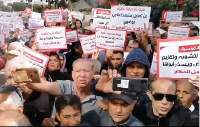 نفذ ,اليوم السبت،  أنصار الحزب الدستوري الحر وقفة إحتجاجية  أمام مقر الهيئة العليا المستقلة للاتصال السمعي البصري "الهايكا".