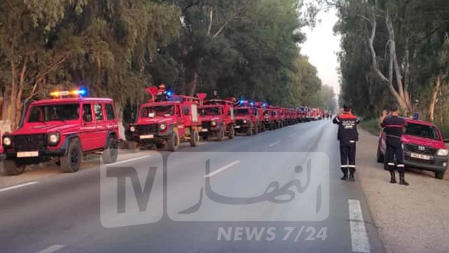 صور/ وصول 31 شاحنة إطفاء جزائرية و85 عونا للمساعدة على إطفاء حريق بوقرنين