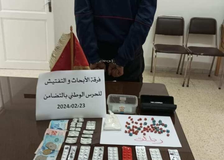 تمكنت أمس دورية مشتركة بين تابعة الوحدات الإستعلاماتية وأحد مراكز الأمن العمومي بمنطقة الحرس الوطني بالتضامن معززة بوحدات التدخلات السريعة بإقليم أريانة من ضبط مروج مخدرات بمحيط المؤسسات التربوية حيث تم حجز لديه 214 قرص مخدر، قطع مختلفة الأحجام من مخدر القنب الهندي، وكمية من مخدر الكوكايين .