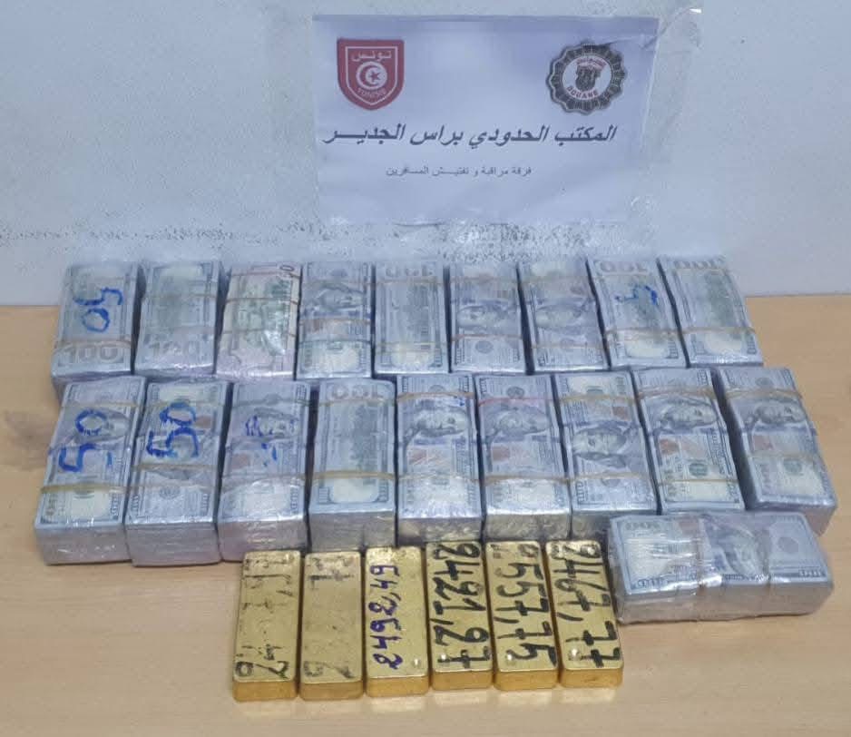 تمكنت مصالح الديوانة بالمعبر الحدودي برأس جدير من إحباط محاولة تهريب 945 ألف دولار و6 سبائك ذهب تزن 14.6 كلغ إلى خارج تونس، كانت مخفية داخل سيارة على متنها شخصان.