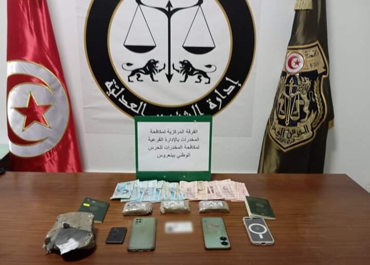 أمكن للفرقة المركزية لمكافحة المخدرات للحرس الوطني ببن عروس، ضبط 3 ذوي شبهة، منهما من أًصيلي إحدى دول الجوار أثناء محاولة ترويج كمية من المخدرات وسط العاصمـة وحجز 3 صفائح من مخدر “القنب الهندي” وسيارة ذات ترقيم أجنبي و مبلغ مالي يشتبه في تأتيه من ترويج المخدرات .