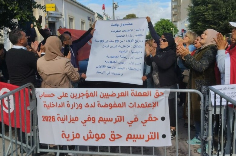 نفذ عدد من العملة العرضيين المؤجّرين على حساب الاعتمادات المفوّضة لدى وزارة الداخلية، اليوم الاثنين، وقفةً احتجاجية أمام مقرّ مجلس نواب الشعب، للمطالبة بترسيمهم وإدراج التمويلات المخصّصة لذلك ضمن ميزانية الدولة لسنة 2026.