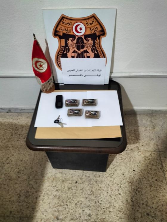 وعلى إثر نصب كمين بمنطقة البروكة على الحد الفاصل بين ولايتيْ قفصة والقصرين تمكن الأعوان من حجز أربع صفائح من مخدر القنب الهندي بحوزة المروّج وسيارته التي يستغلها في الغرض.