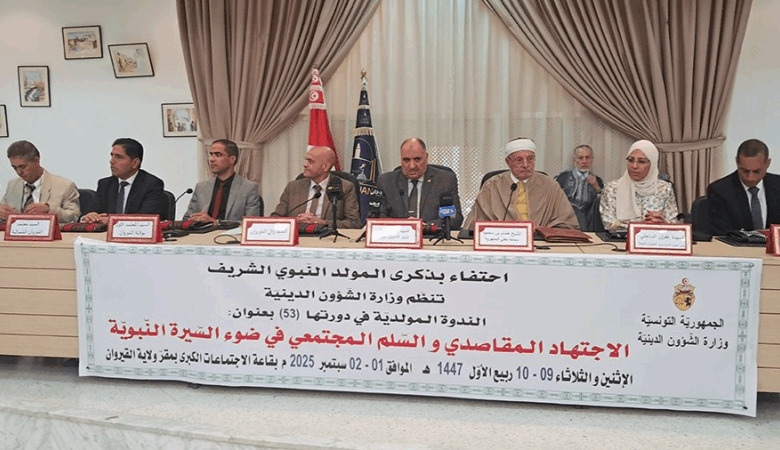أشرف وزير الشؤون الدينية أحمد البوهالي، صباح الاثنين 1 سبتمبر 2025 بمقر ولاية القيروان على افتتاح أشغال الدورة 53 للندوة المولدية الدولية التي تنظمها وزارة الشؤون الدينية بالتعاون مع ولاية القيروان، وذلك في إطار الاحتفال بذكرى المولد النبوي الشريف تحت شعار: “الاجتهاد المقاصدي والسّلم المجتمعي في ضوء السيرة النبوية”.