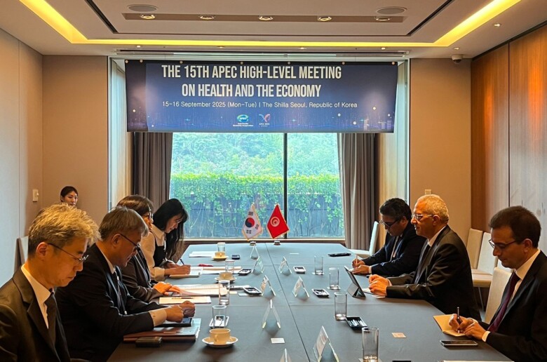 التقى وزير الصحّة مصطفى الفرجاني، اليوم 16سبتمبر 2025، بوزيرة الصحة والرعاية الاجتماعية بجمهورية كوريا الجنوبيّة، الدكتورة Jeong Eun-kyeong