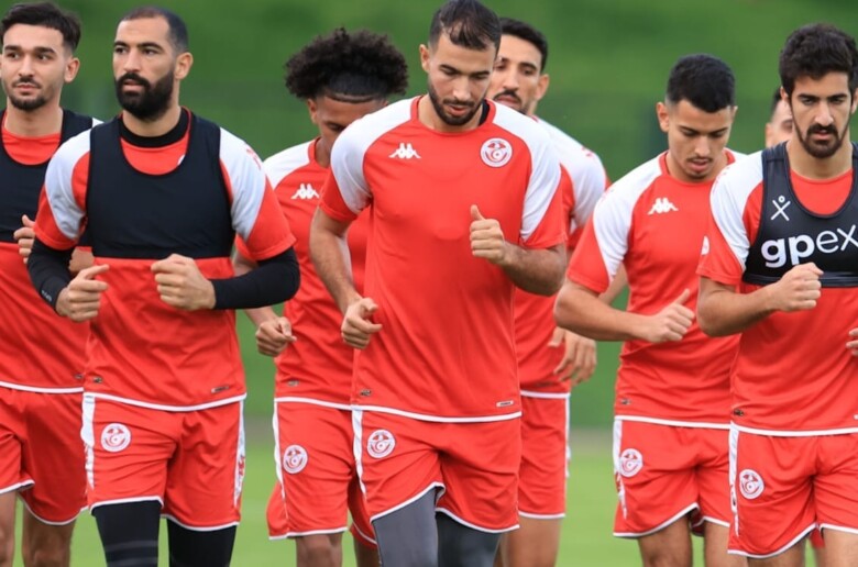 وافادت الجامعة التونسية لكرة القدم بان جميع اللاعبين شاركوا في التدريبات، واختار الاطار الفني بقيادة قيس اليعقوبي عدم رفع نسق التمارين بعد الرحلة الطويلة وارتكز العمل على الاهتمام بالكرات الثابتة والتمركز في الوضعيات الدفاعية والهجومية، إضافة إلى شرح استراتيجية اللعب التي ينوي تطبيقها خلال المقابلة.