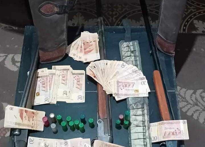 في متابعة لمباشرة الوحدات الإستعلاماتية بمنطقة الحرس الوطني ببنڨردان (إقليم مدنين) البحث في قضية عدلية موضوعها “إقامة مستودع للأسلحة والذخيرة والإتجار فيها بدون ترخيص” وإلقاء القبض على 4 أشخاص ، بمزيد التحري معهم و مداهمة مقرات سكناهم أمكن للوحدات المذكورة حجز 3 بنادق صيد ، ذخيرة ومبلغا ماليا من العملة الأجنبية.