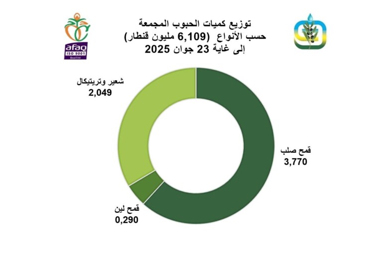 وتتوزع الكميات المجمعة بين حبوب استهلاك بنسبة 96,3% وبذور ممتازة بنسبة 3,7%.