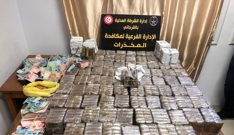 تمكن أمس أعوان الادارة الفرعية لمكافحة المخدرات بادارة الشرطة العدلية بالقرجاني من تفكيك شبكة خطيرة لترويج المخدرات بجهة حي التضامن وحجز أكثر من تسعين كلغ من القنب الهندي ومبلغ مالي هام على ذمة البحث.
