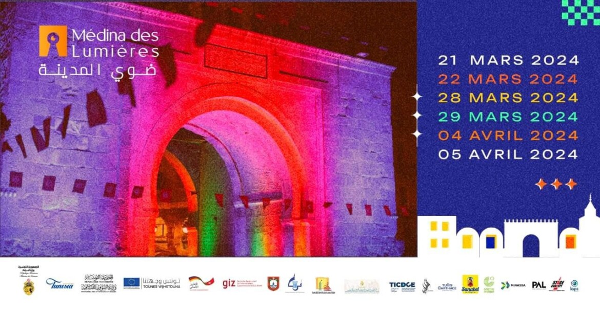 ضوي المدينة : تظاهرة فنية للتعريف بالتراث الثقافي التونسي بمعالم تاريخية بالمدينة العتيقة تقدم نسخة 2024 من ضوي المدينة تجربة غنية ومثيرة، تسلط الأضواء على أنشطة وفعاليات فريدة ومتنوعة مثل معارض الصور، وتذوق الأطباق الخاصة، و الإضاءة الفنية في الأماكن والزقاقات المختلفة  في المدينة العتيقة، سيغمر الزوار أنفسهم في أجواء بصرية لا تُنسى برنامج غنيً لـ ضوي المدينة – Médina des Lumières .