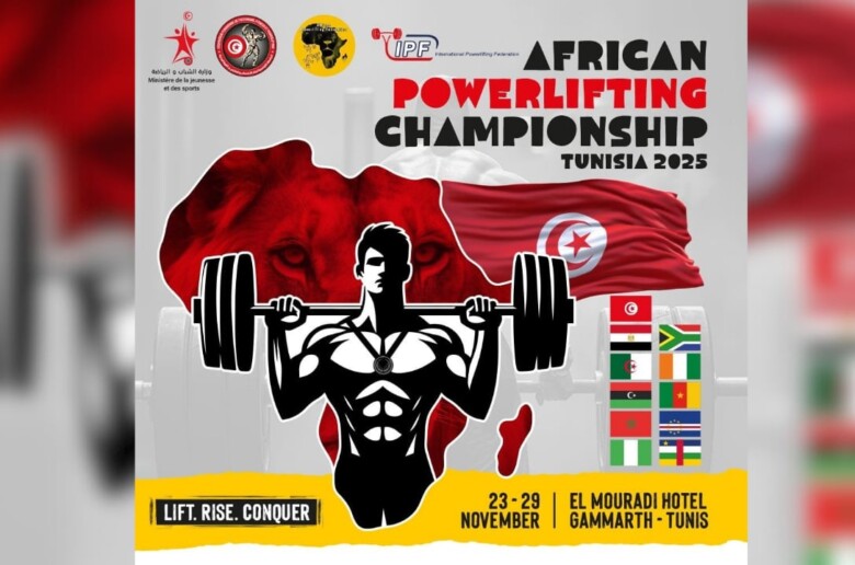 تنظم تونس بطولة إفريقيا للقوة البدنية للأصاغر والأواسط والأكابر والأساتذة ذكورًا وإناثًا من 23 إلى 29 نوفمبر بضاحية قمرت، بمشاركة 177 رياضيًا من 11 دولة.