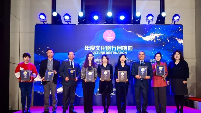 وأوضح أن الجائزة الأولى تمثلت في اختيار تونس كإحدى أفضل الوجهات الثقافية لسنة 2025 من قبل Voyage Awards التي ينظمها Voyage Media Group، وهي من أبرز المنصات الإعلامية المتخصصة في السياحة الراقية بالصين.