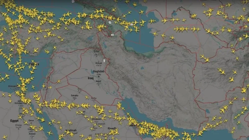 وأظهرت بيانات منصة (فلايت أوير) لتتبع الرحلات الجوية تأثر آلاف الرحلات الجوية في أنحاء الشرق الأوسط.