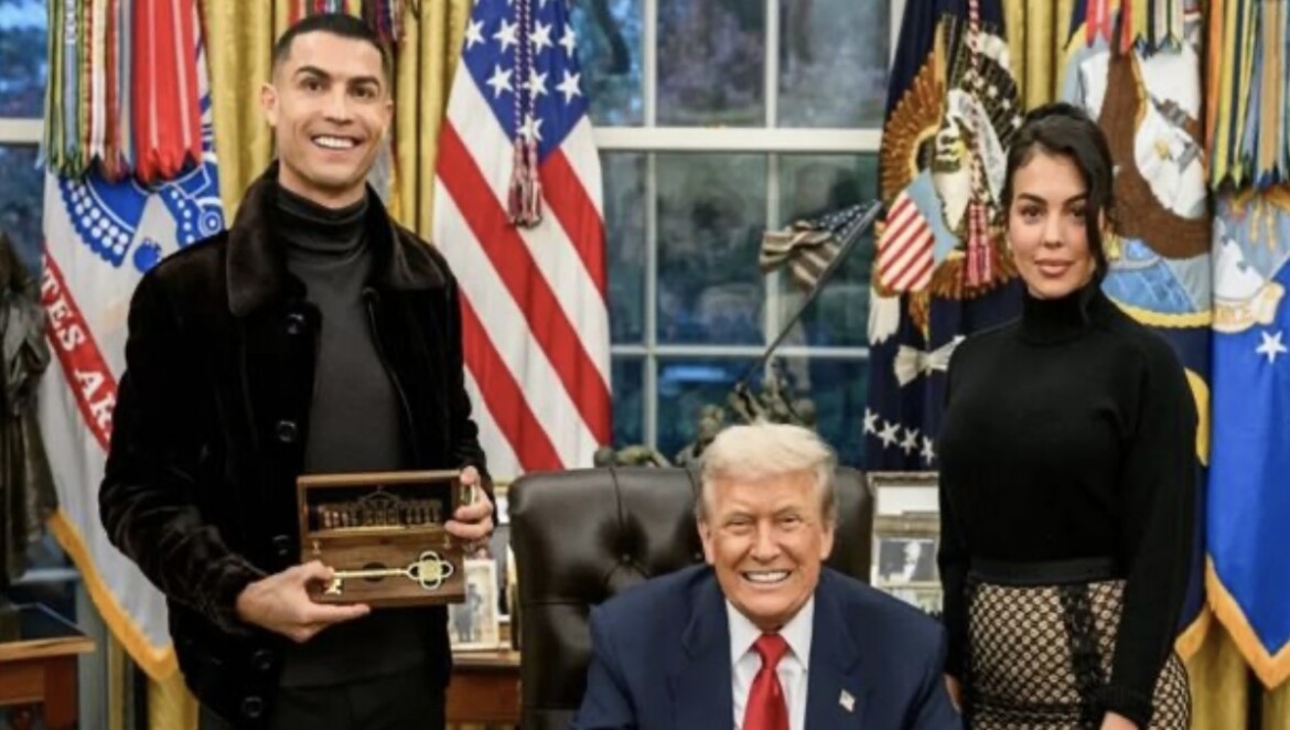 ونشر رونالدو صورًا توثّق لحظة استلامه للمفتاح، موجّهًا الشكر لترامب على حفاوة الاستقبال.