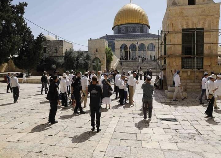 ووفقا لما ذكرته وكالة الأنباء الفلسطينية (وفا) فان عشرات المستعمرين اقتحموا المسجد الأقصى على شكل مجموعات ، من جهة باب المغاربة ، ونفذوا جولات استفزازية في باحاته، وأدوا طقوسا تلمودية.