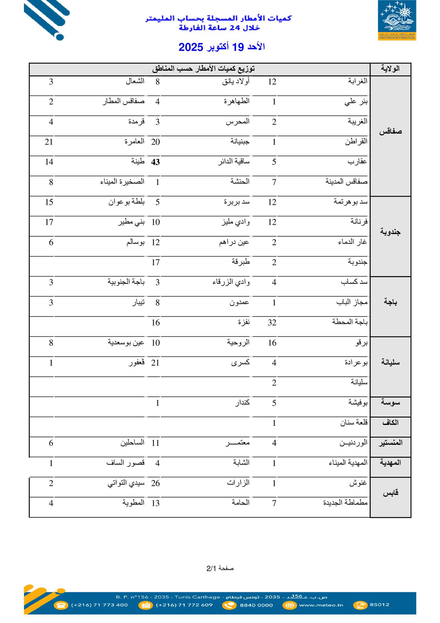 وفي ما يلي قائمة مفصلة بكميات الأمطار: