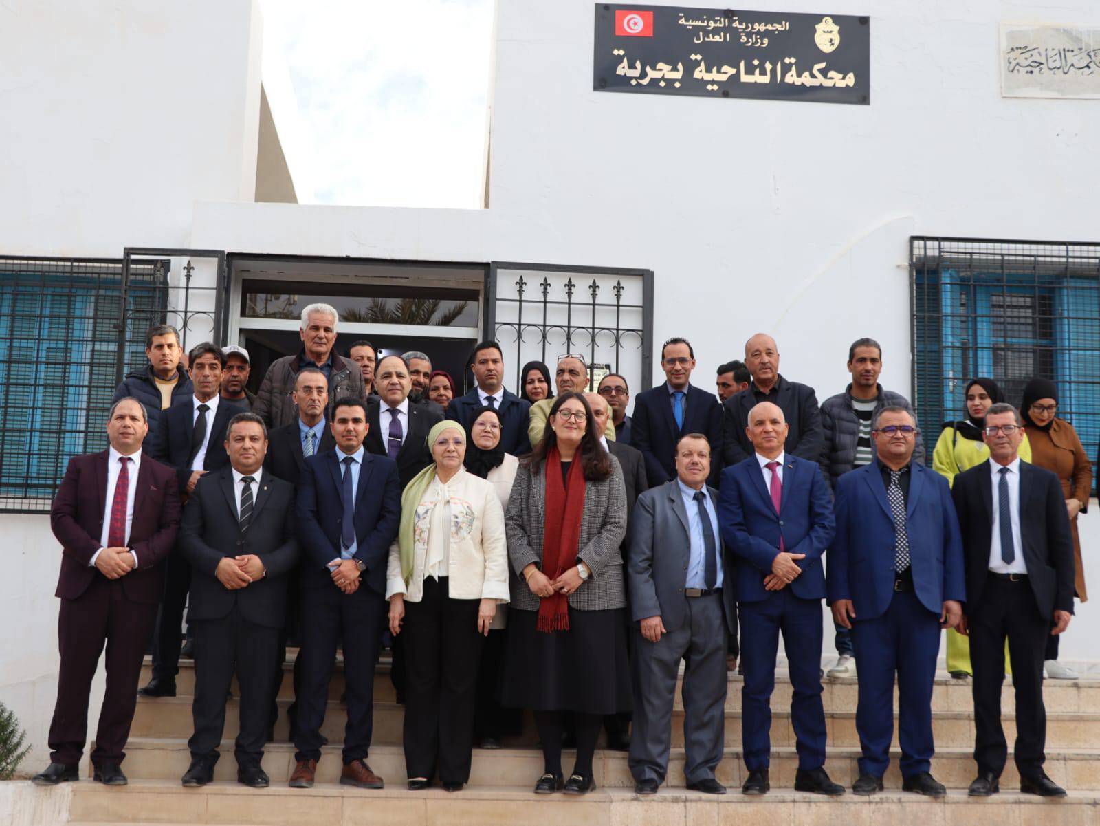كما أدّت بالمناسبة زيارة إلى محكمة الناحية بجربة، حيث اطّلعت على سير العمل وأوصت بتيسير الخدمات لكافة المتقاضين والمتدخلين في مرفق العدالة.