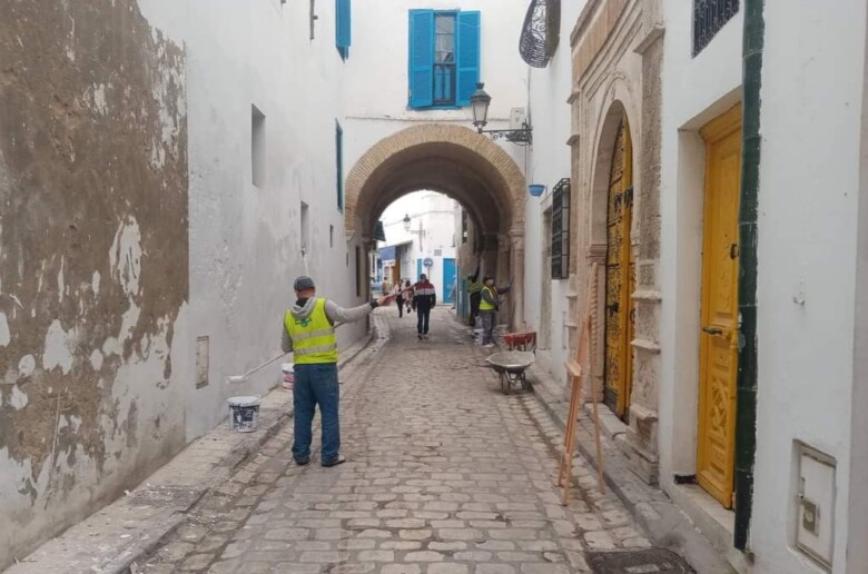وفي إطار هذه الحملة التوعوية التي نظمتها وزارة الشؤون الثقافية ووزارة البيئة، قامت المصالح المختصّة بالمعهد الوطني للتراث ووكالة إحياء التراث والتنمية الثقافية يوم السبت الفارط بأشغال دهان لعدد من الواجهات الخارجية شملت المدرسة السليمانية وواجهة جامع الزيتونة المطلّة على سوق الفكة، ومسجد الطراز وزاوية سيدي شيحة ومسجد حمودة باشا وواجهات ساحة رمضان باي وزاوية سيدي الباهي وزاوية سيدي بن زياد، وتربة لاز (بساحة القصبة) ونهج سيدي بن عروس ونهج الباشا، وصولا إلى ساحة “تريبونال” وجامع القصر ودار حسين.