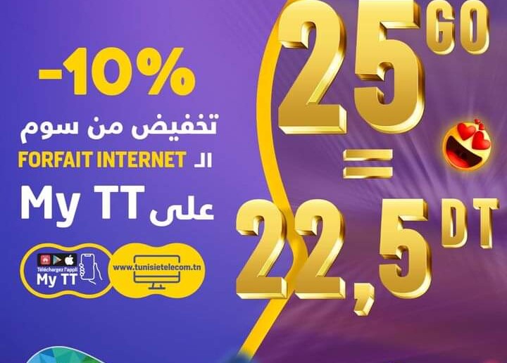 تمتع بـ10% تخفيض على les forfaits data عالـappli MyTT : https://onelink.to/4xvrfv