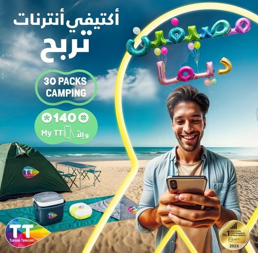 يكفي انك تكتيفي الأنترنات على *140# و الا تدخل لتطبيقة MyTT و اربح Pack de camping و الا Forfait 75 Go .