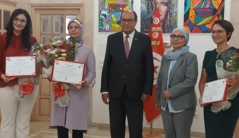 قامت وزيرة الأسرة والمرأة والطفولة وكبار السنّ، أسماء الجابري، ووزير تكنولوجيات الاتصال سفيان الهميسي الاثنين 11 أوت 2025 بتتويج 3 باحثات تونسيات في موكب تسليم جائزة أفضل بحث علمي نسائي بعنوان سنة 2025 بمقر الأسرة والمرأة والطفولة وكبار السنّ، بالعاصمة.