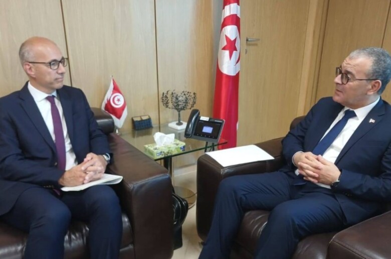 وزير الإقتصاد والتخطيط، سمير عبد الحفيظ، اليوم الثلاثاء، بـ فيليب ايريرا مدير المجمع العالمي والمكلف بالعلاقات الدولية لشركة ”سفران” الفرنسية المتخصصة في صناعة مكونات وتجهيزات الطائرات الذي يؤدي حاليا زيارة عمل إلى تونس