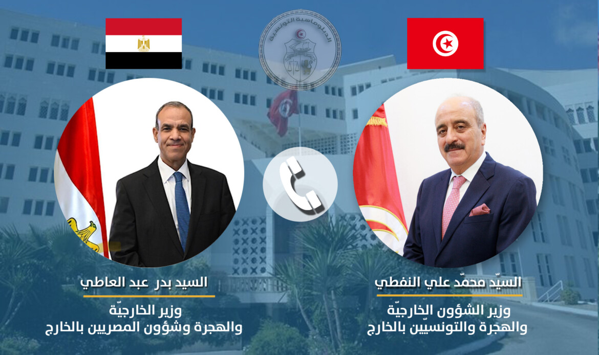 تلقّى وزير الشؤون الخارجية والهجرة والتونسيين بالخارج محمد على النفطي أمس الاثنين 16 جوان 2025، مكالمة هاتفية من نظيره المصري وزير الخارجية والهجرة وشؤون المصريين بالخارج بدر عبد العاطي .